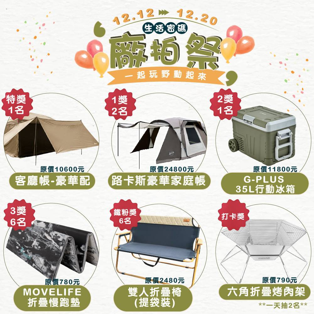 🎁 抽獎獎項包含:豪華客廳帳、行動冰箱、折疊椅、運動墊等,總價值超過 10 萬元!