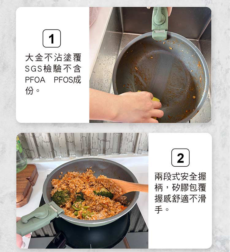 4. 鍋具加熱時,建議將握柄卸下,取鍋時再裝置握柄。