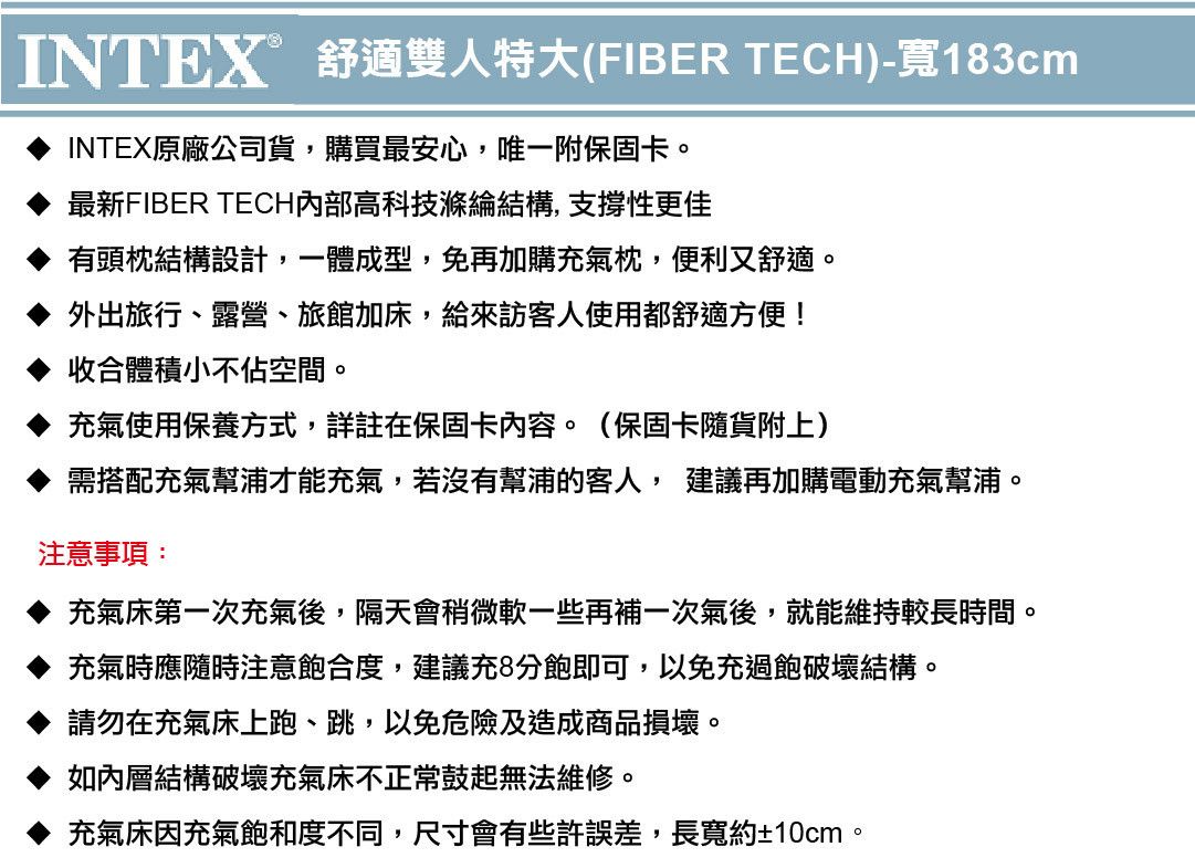 【INTEX】舒適雙人特大充氣床(FIBER TECH)-寬183cm 15010111(64144)