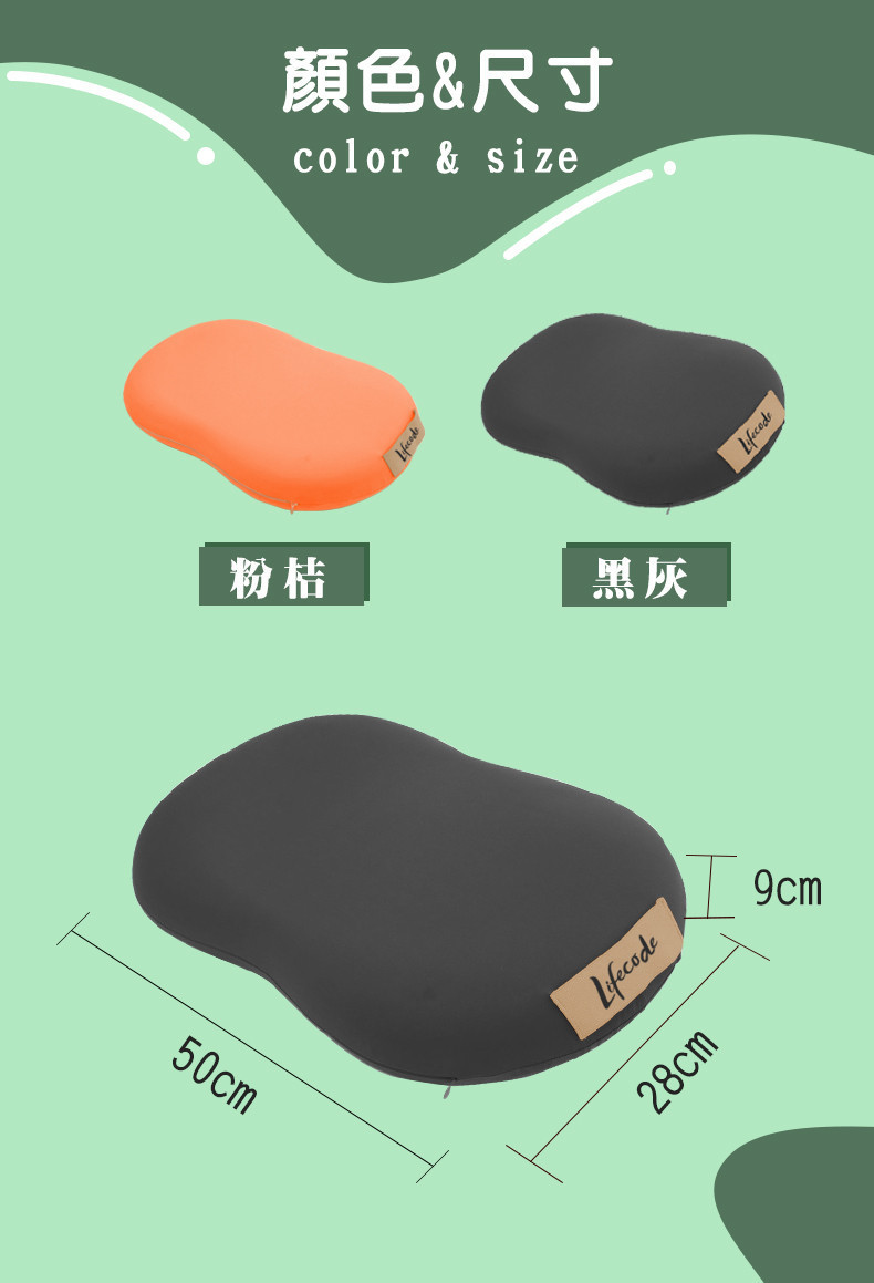 【LIFECODE】貓肚皮記憶枕/隨身枕/護腰枕(送外出壓縮袋)粉桔/黑灰15040141/8-1