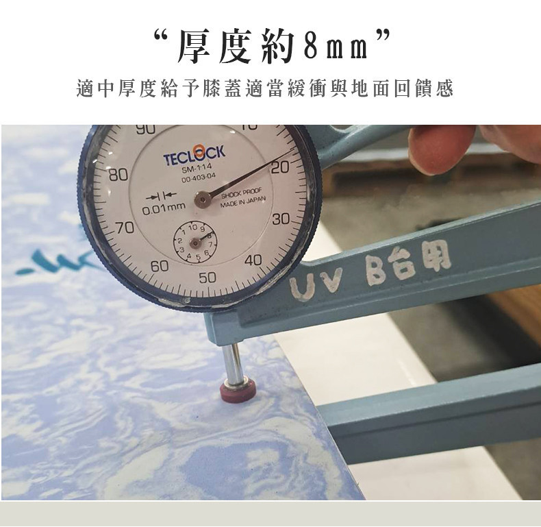 適中厚度 8mm:提供膝蓋緩衝,同時保有地面回饋感