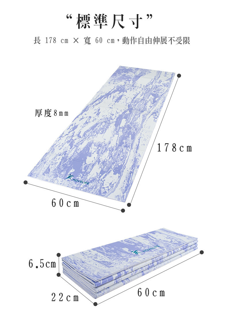 標準尺寸 178×60cm:動作自由伸展不受限,適用居家、教室、戶外