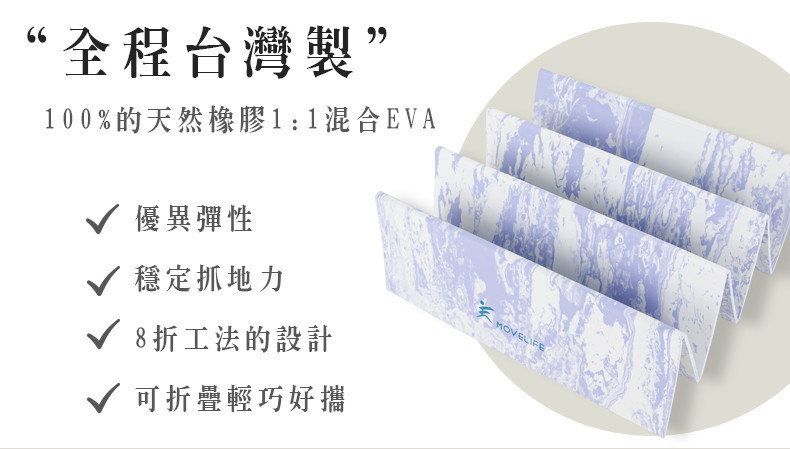 MIT 全程台灣製造,嚴選 100% 天然橡膠 1:1 混合EVA 材質,兼具止滑力與彈性。