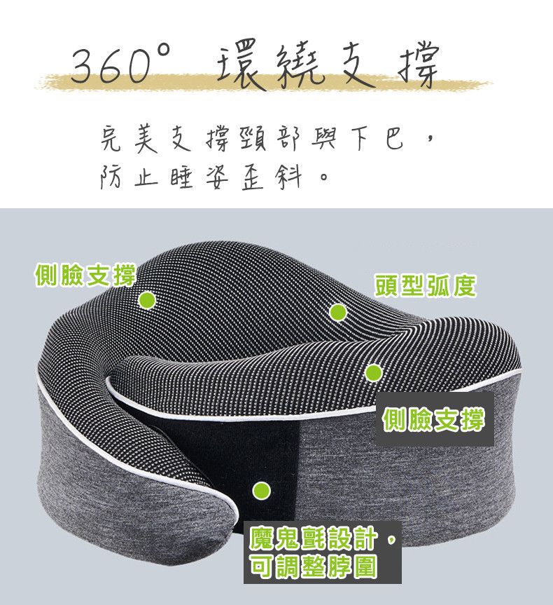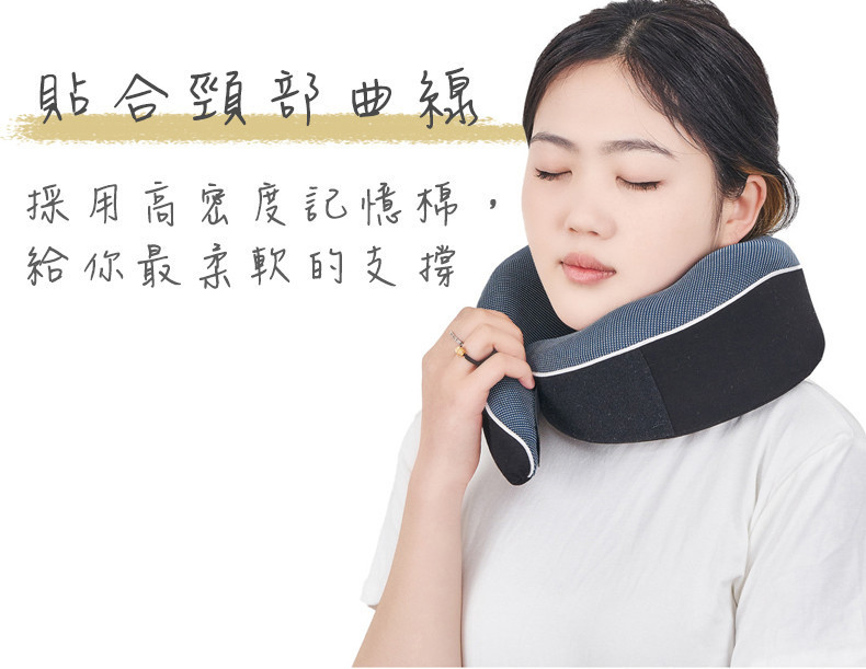 《旅途》系列護頸枕採用高密度記憶棉,貼合頸部曲線,給你最柔軟的支撐。附特製壓縮收納盒與眼罩+耳塞組合,讓你在飛機、高鐵或長途巴士上都能安穩入眠。