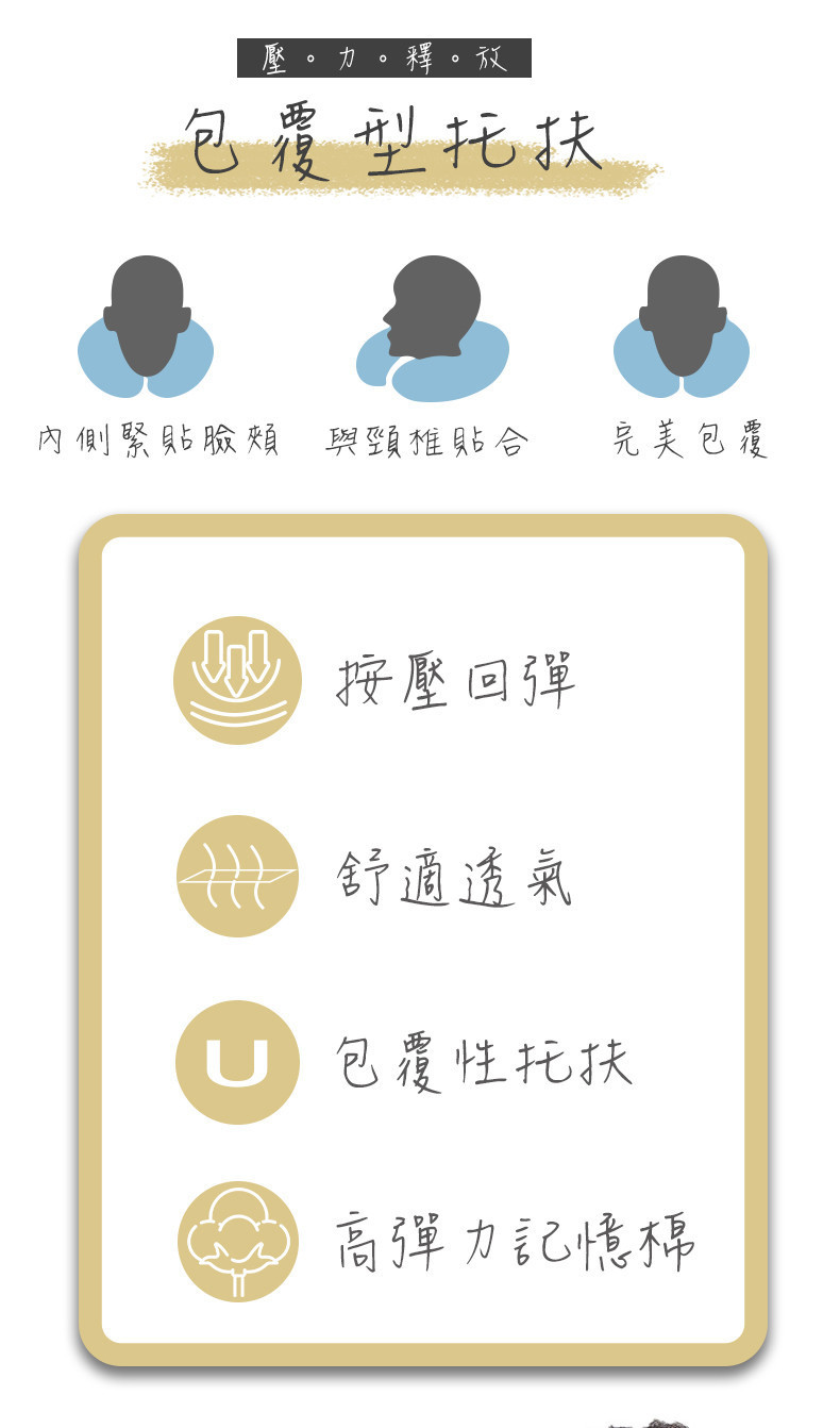人體工學護頸設計:完美支撐頸部與下巴,防止睡姿歪斜。