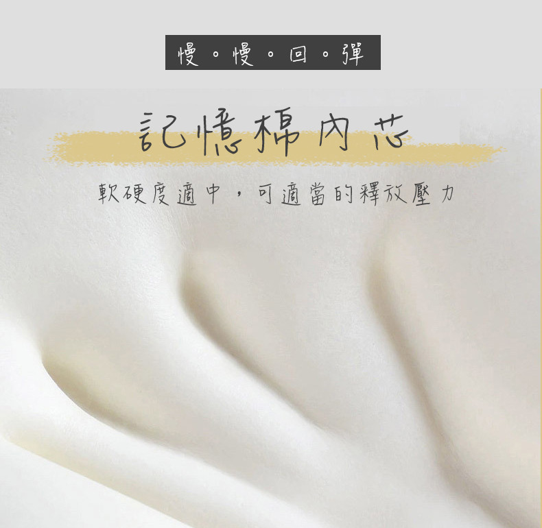 高彈性記憶棉枕芯:柔軟支撐、快速回彈、透氣不悶熱。