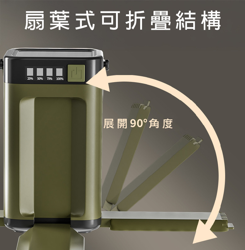 ◆ 扇葉式可折疊結構:角度可調整 90° 展開,照明範圍更廣