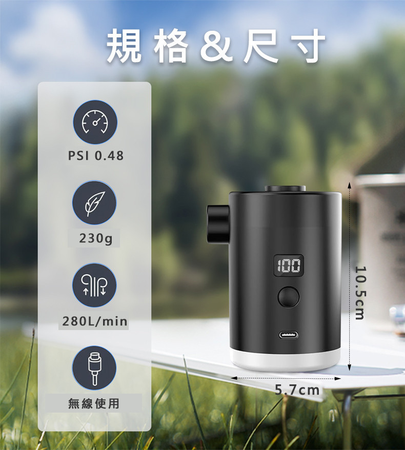• 3400PA(約 0.45~0.48 PSI)強勁氣壓,多種充氣商品皆可使用
