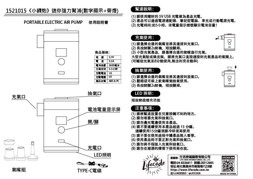 【LIFECODE】《小鋼炮》迷你強力幫浦(數字顯示+帶燈)15210159