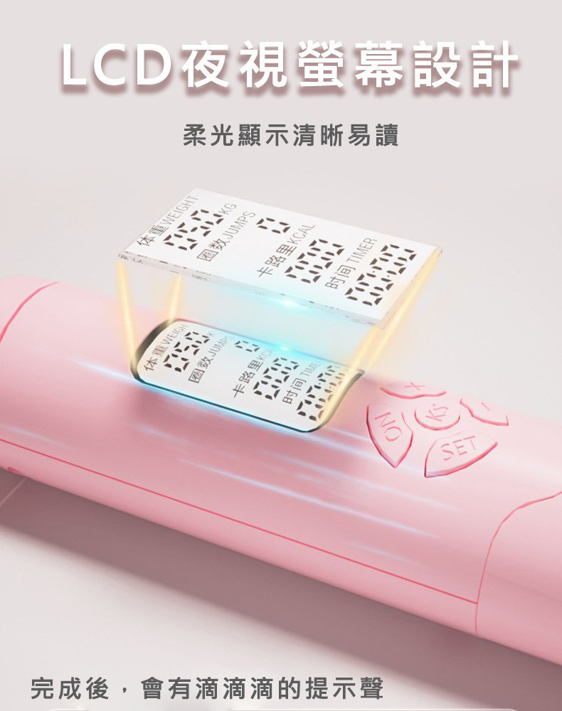 結合 AI 電子晶片與 LCD 夜視螢幕,從計數、卡路里到時間全面掌控,讓跳繩成為最有效率的居家燃脂運動。