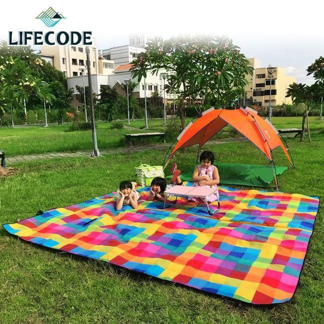 贈品【LIFECODE】格紋絨布防水野餐墊300x300cm-紅格子 12340111