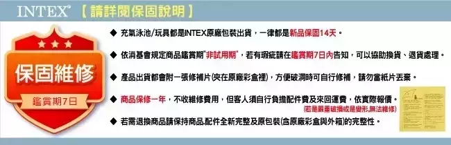 ◆ 保固:新品保固14天,商品若有瑕疵,請於鑑賞期7天內反映,一經充氣使用恕無法辦理退貨。